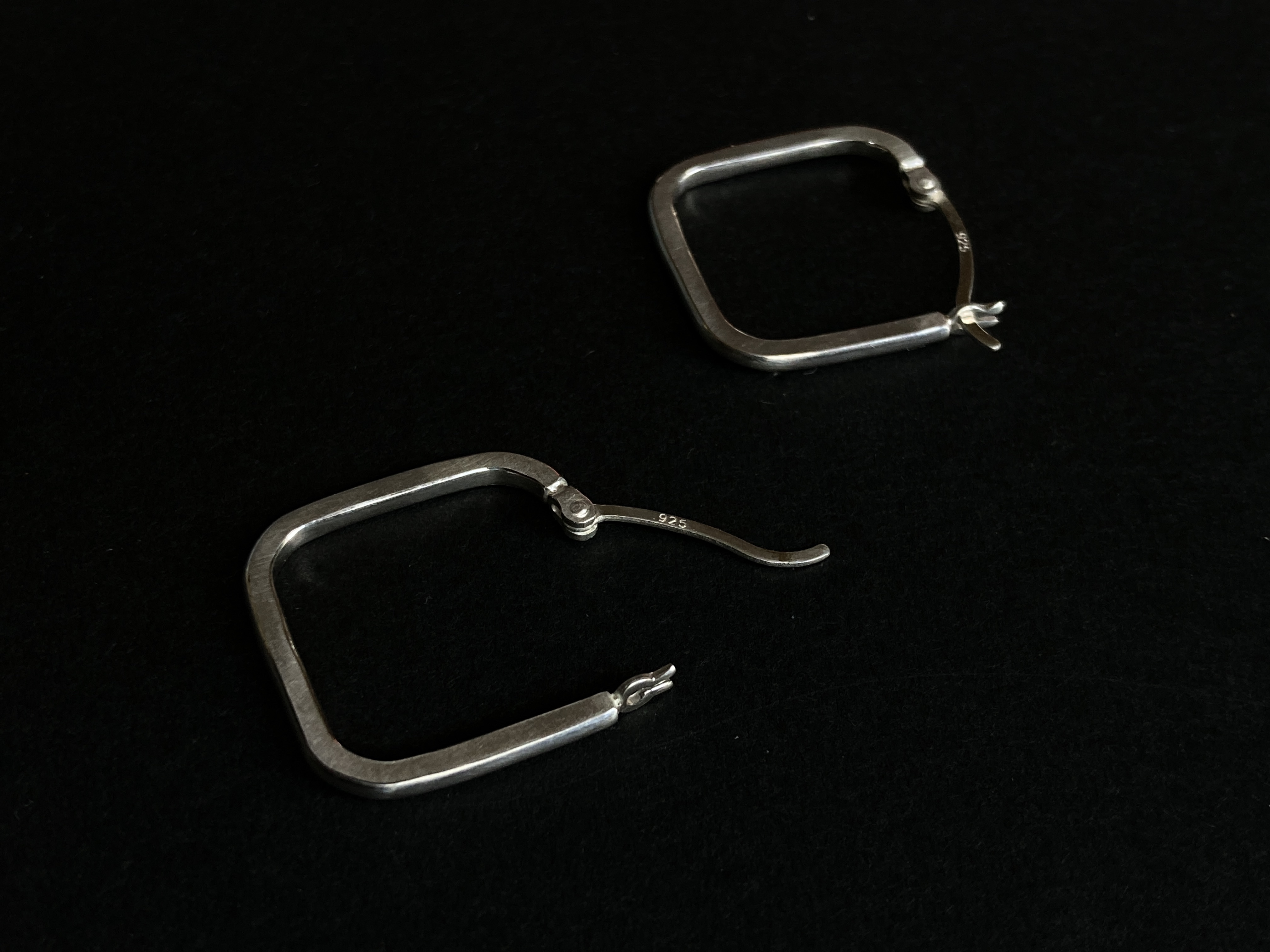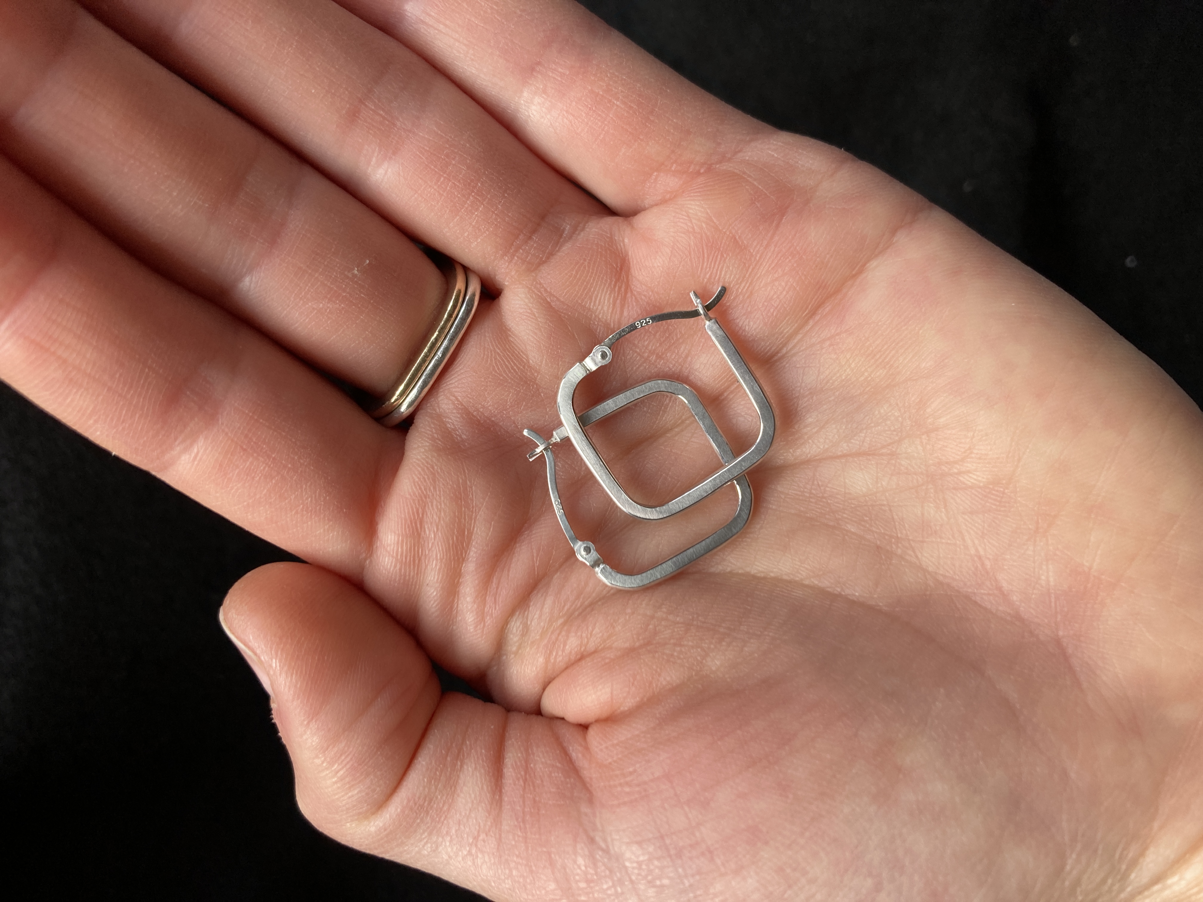 They are made in silver wire and are finished with a matte sheen with burnished edges to catch the light when worn.